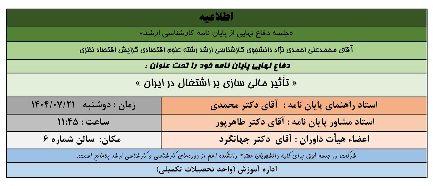 اطلاعیه برگزاری جلسات دفاع و پیش دفاع
